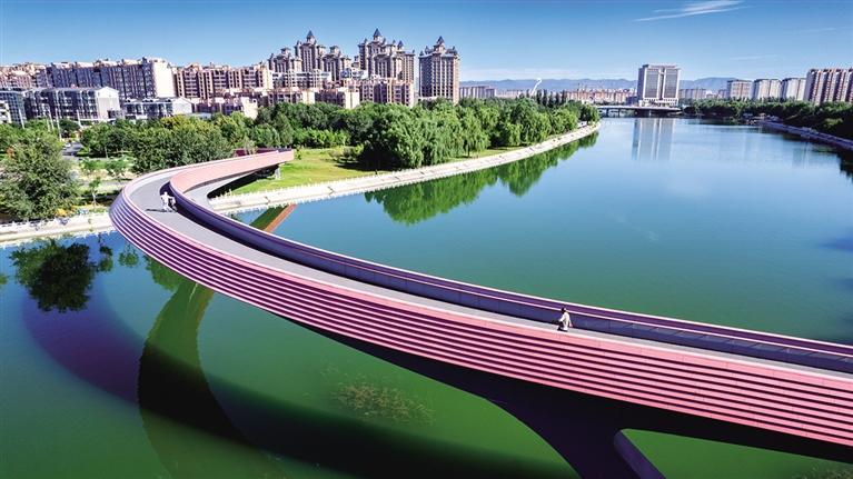 小黑河河道上的彩虹橋